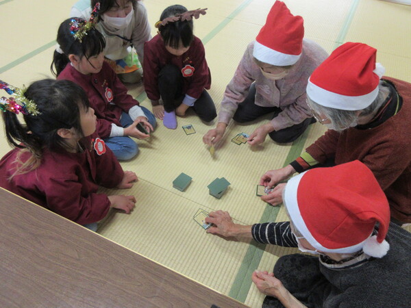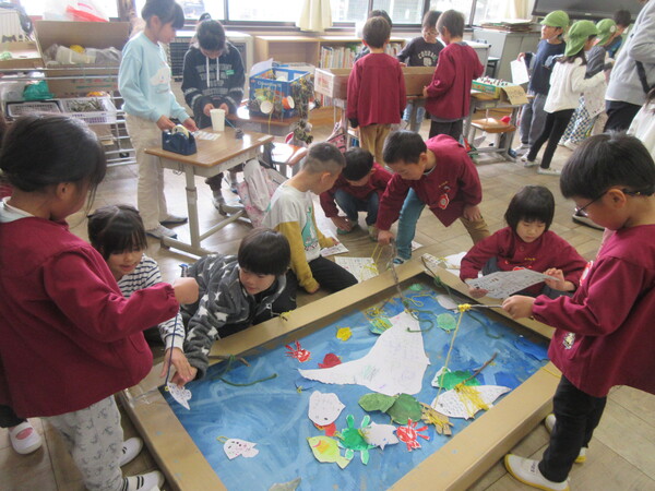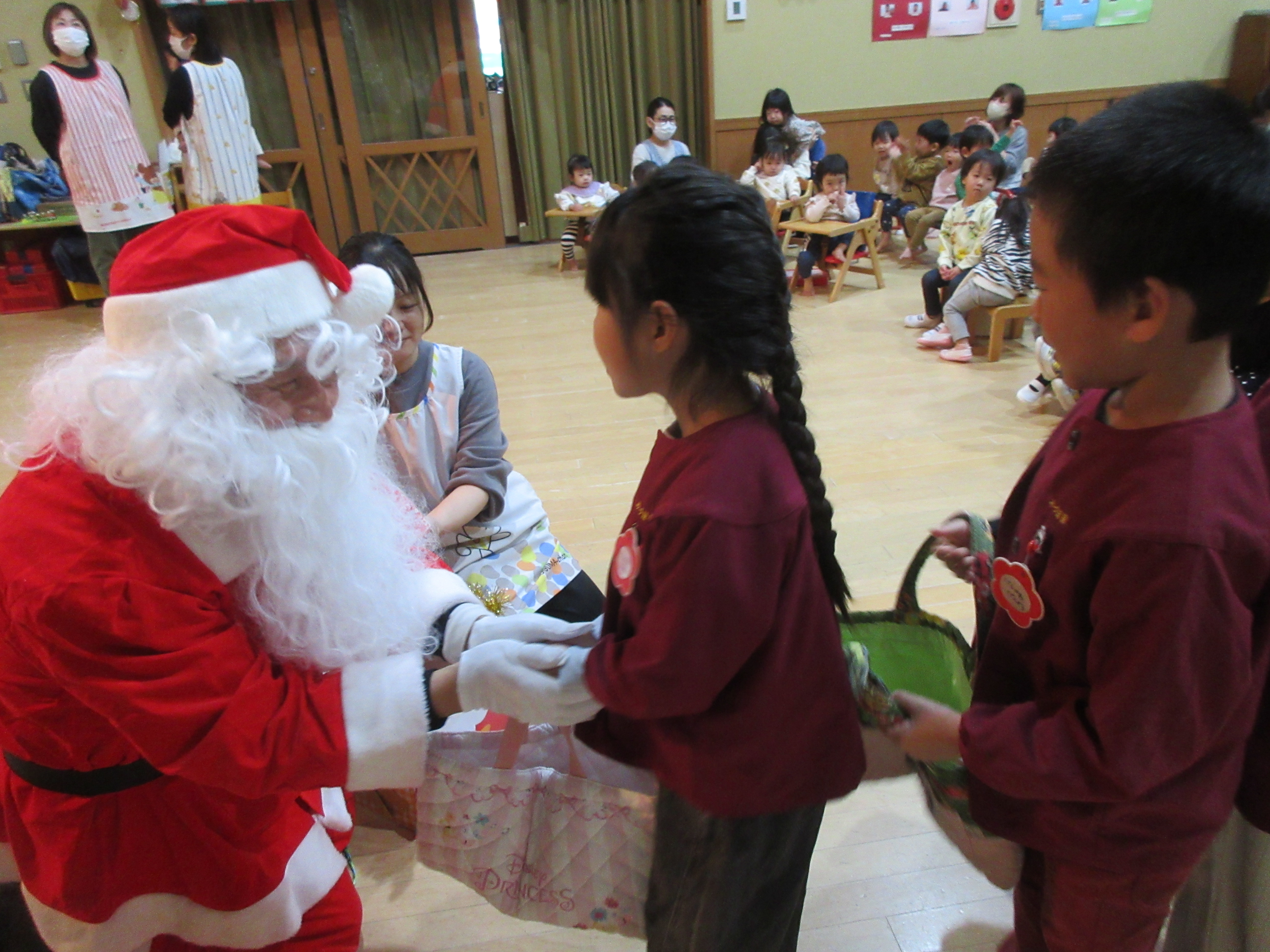 | 秋晴れの日はたくさんお散歩に行き、どんぐりや落ち葉を拾いました。駅の階段をあがり景色を見て喜んだり、電車に手を振り 振り返してもらい大喜びでした。持ち帰った物でリースやマラカスづくりをして、「サンタさんが来てくれかな?」と楽しみに しているりす組さん! 発表会に向けて「もりのおふろ」では、自分のやりたい役になりきって、みんなで楽しく台詞が言えるようになってきました。 とってもかわいい姿で楽しんでいます。 寒い日が続きますがお天気の良い日は、戸外で身体を動かして遊べる遊びを楽しみたいと思います。 |