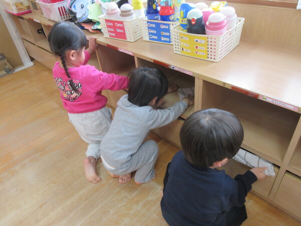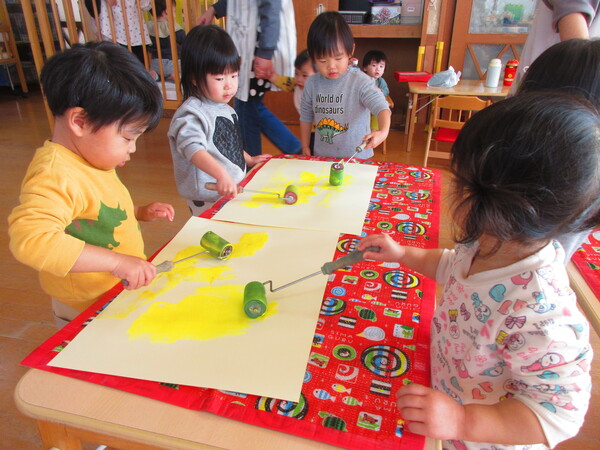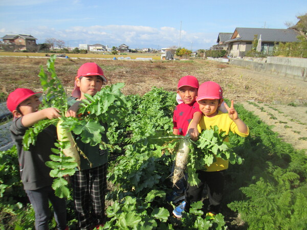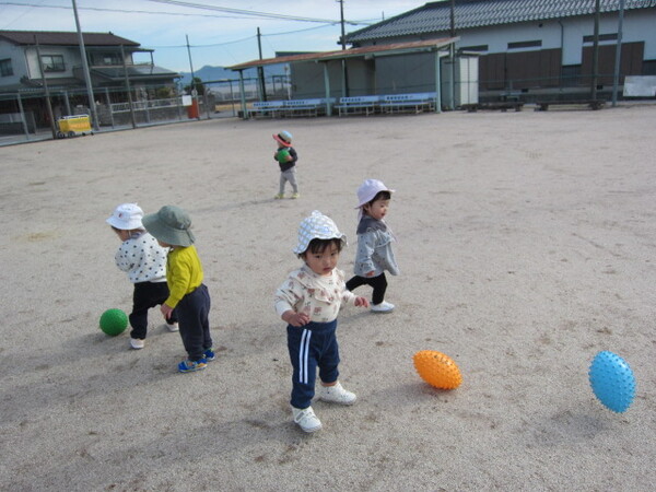 | (1歳児) 12月に入り寒い日が続いていますが、毎日元気いっぱいのひよこぐみさん! 最近は、発表会に向けて取り組んでいる”バナナあそび”に夢中で、「バナナする!」「ママ(役)する!」と 楽しんでくれています。 寒くてなかなか外には行けませんが「バナナしたい!」「おままごとしたい!」など、たくさん話せるように なってきたひよこぐみさんの声を聞きながら、毎日楽しく過ごしていきたいと思います!! (0歳児) 天気の良い日は園庭で遊んだり散歩に出かけて柿や栗、コスモスなど、たくさんの秋にふれることもできました。 電車を見に行った時にひろったどんぐりを使ってマラカスを作るととても喜んでいました。 12月は発表会があり、野菜のうたの手あそびを喜んでしています。 お歌が大好きな子どもたちは歌に合わせて可愛いポーズを見せてくれています。 |