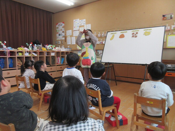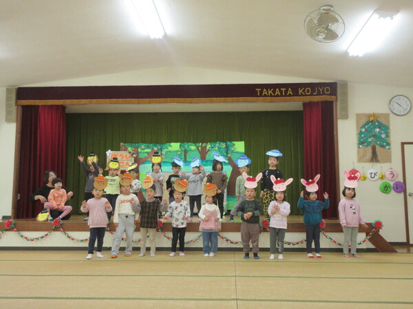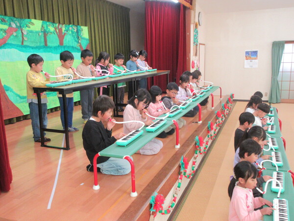 | 流行病もあり体調を崩しやすくなる季節ですが、毎日みんなで一生懸命劇遊びやピアニカに取り組みました。 初めは自信がなく声が小さくなっていたみんな。 毎日の積み重ねで大きな声ではっきりと台詞が言えるようになりました。 子どもたちの成長の早さに驚かされる毎日です! これからも沢山の行事が待っているきりん組さんですが、元気いっぱいたくさん食べて、たくさんあそんで、思い出をいっぱい つくっていきたいと思っています☆ |